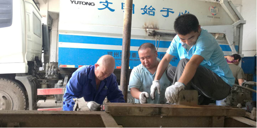 8月11日晚上21點左右,一通電話驚醒了正在熟睡的法兵兵,氣氛頓時緊張起來,他振作精神,收拾好工具直奔事故現(xiàn)場,經(jīng)過2個多小時的搶修,清運車輛成功脫困。法兵兵說“像這樣的事情幾乎每天都會發(fā)生,有時甚至搶修到夜里兩三點,不管多晚我們也得立刻趕到,不能耽誤夜間清運垃圾”。