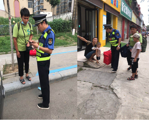 此時(shí),楊靜和馬晨光在轄區(qū)內(nèi)正巡查至燕山路(人民路-漓江路段),發(fā)現(xiàn)路邊一中年婦女背著大包小包領(lǐng)著一男童焦慮地左顧右盼,兩人立即上前了解情況。經(jīng)交談得知,這對(duì)母子因?yàn)閺臎]來過漯河,所以一下車就迷路了,又擔(dān)心又害怕,怕錯(cuò)過報(bào)名時(shí)間??吹綍r(shí)間緊迫,楊靜、馬晨光向母子簡單詢問了學(xué)校的名稱,因母子二人說不清楚學(xué)校具體地址,只好邊走邊問,最終安全將母子二人送達(dá)學(xué)校。同時(shí)將回去的乘車路線向小馬媽媽叮囑清楚。