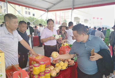 市民選購(gòu)特色農(nóng)產(chǎn)品。