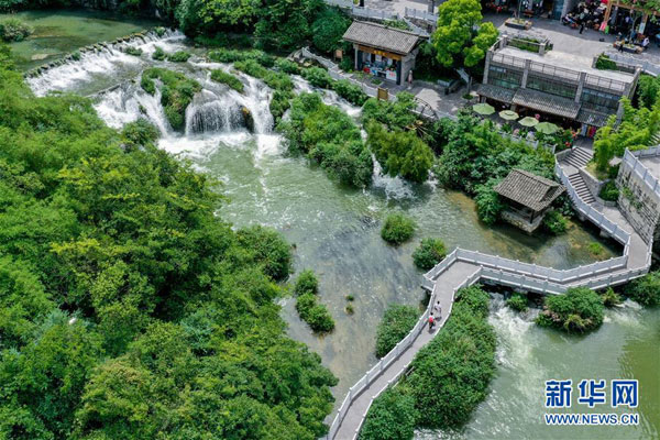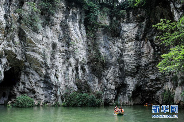 6月9日,游人在貴陽市天河潭旅游度假區(qū)游玩。 夏日的貴陽市天河潭旅游度假區(qū)草木蒼翠,風景如畫,吸引游客來此休閑游玩。 新華社記者 歐東衢 攝