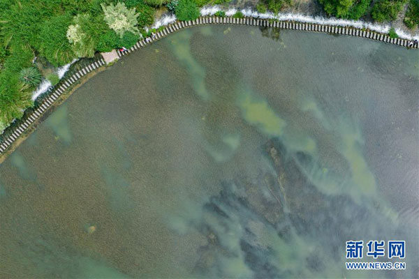 6月9日,游人在貴陽市天河潭旅游度假區(qū)游玩(無人機照片)。 夏日的貴陽市天河潭旅游度假區(qū)草木蒼翠,風景如畫,吸引游客來此休閑游玩。 新華社記者 歐東衢 攝
