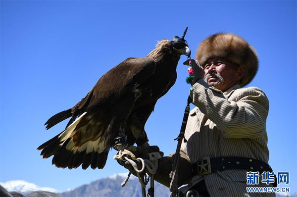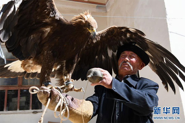 6月29日,庫爾馬西·胡特曼撫摸他的獵鷹。 馴鷹習(xí)俗是柯爾克孜族長期以來形成的一種生產(chǎn)生活習(xí)俗,新疆克孜勒蘇柯爾克孜自治州阿合奇縣牙朗奇村的庫爾馬西·胡特曼今年69歲,是國家級非物質(zhì)文化遺產(chǎn)代表性項目柯爾克孜族馴鷹習(xí)俗的代表性傳承人。 庫爾馬西的家族世代馴鷹。從小與鷹相處,庫爾馬西成為名副其實的“鷹語者”。要將兇猛的野鷹訓(xùn)練成聽從指揮的獵鷹絕非易事,需要馴鷹人投入大量心血,精心喂養(yǎng)。一代代馴鷹人之間口耳相傳,形成了一套涵蓋取鷹、熬鷹、馴鷹、放鷹等方面的絕學(xué)。“鷹是有靈性的動物,懂得感恩,會通過抖動羽毛來表示喜悅,表示對你的愛。”庫爾馬西說,“鷹也會因為我的夸獎給我信號,通過叫聲、身體語言告訴我,它理解了我的話。” 在柯爾克孜族的馴鷹傳統(tǒng)里,獵鷹在為主人“服役”一到五年后,將重返天空,獲得自由。隨著野生動物保護(hù)相關(guān)法規(guī)的出臺,當(dāng)?shù)匾呀柜Z鷹人取鷹捕鷹,目前已馴養(yǎng)的獵鷹放飛后恐將無以為繼。或許,庫爾馬西這一代人,將成為最后的“鷹語者”。 新華社記者 宋彥樺 攝
