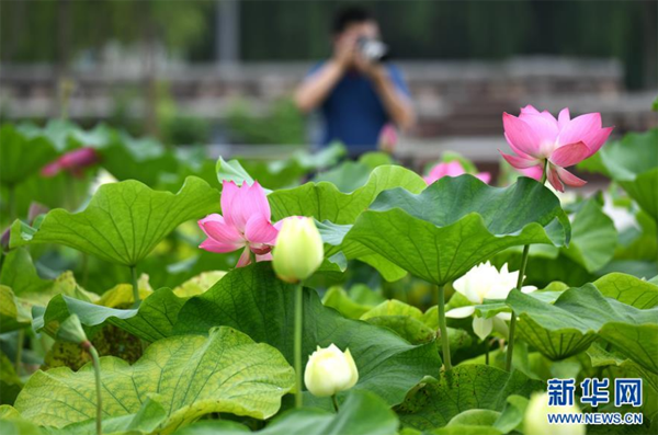 這是7月9日在位于石家莊市鹿泉區(qū)的龍泉湖濕地公園拍攝的荷塘景色。 位于河北省石家莊市鹿泉區(qū)的龍泉湖濕地公園,規(guī)劃面積5000余畝,是該市打造的較大規(guī)模城市濕地公園。近年來,石家莊市以“城在景中、景在城中、見山見水”的發(fā)展理念,將多年堆積廢物的垃圾溝改造成為水清草綠的生態(tài)濕地公園。昔日垃圾場變身“天然氧吧”,成為市民觀光、休閑、健身的好去處。 新華社發(fā)(陳其保 攝)