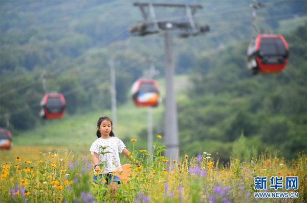 這是7月19日拍攝的吉林市萬科松花湖度假區(qū)的纜車。 夏日時節(jié),吉林省吉林市的萬科松花湖度假區(qū)利用滑雪場的地形優(yōu)勢,增添了高山花海、彩虹滑道等休閑旅游項目,吸引游客前來觀光游覽。 新華社發(fā)(顏麟蘊攝)