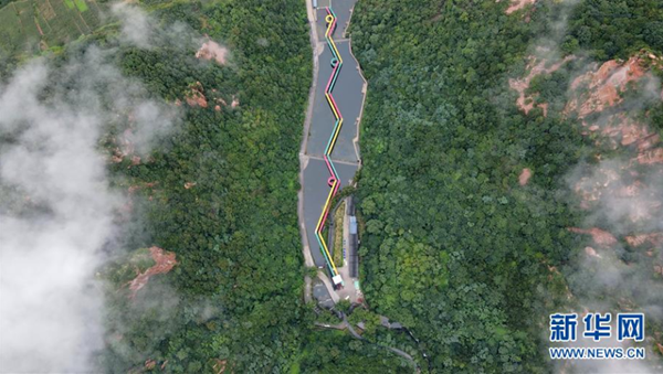8月15日拍攝的紫金山景區(qū)內(nèi)的旅游設(shè)施(無人機照片)。 當(dāng)日,位于河北省邢臺市西部太行山脈的紫金山景區(qū)云霧彌漫,美景如畫。 新華社記者 牟宇 攝