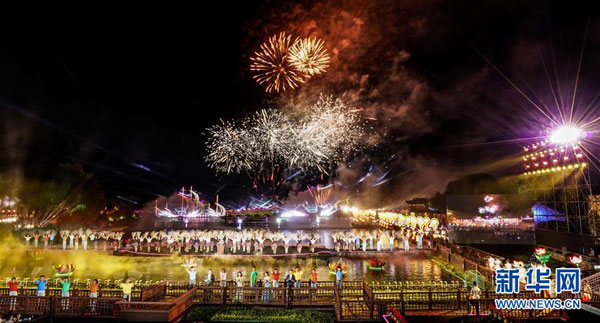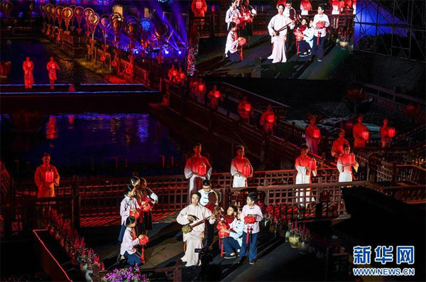 9月28日,演員在開燈儀式上表演歌舞節(jié)目。 當日,2020海峽兩岸(昆山)中秋燈會在江蘇昆山開幕,為期一個月。燈會設(shè)置的水鄉(xiāng)周莊燈區(qū)以水鄉(xiāng)、古鎮(zhèn)、田園江南為依托,將傳統(tǒng)彩燈與現(xiàn)代光影藝術(shù)相融合,打造“水韻芳華”夜周莊。 新華社記者 楊磊 攝