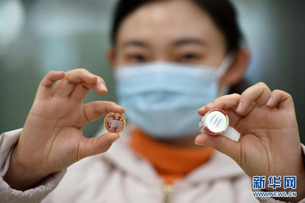 1月29日在杭州拍攝的紀(jì)念幣。當(dāng)日,中國(guó)人民銀行發(fā)行的2021年賀歲普通紀(jì)念幣開始兌換。