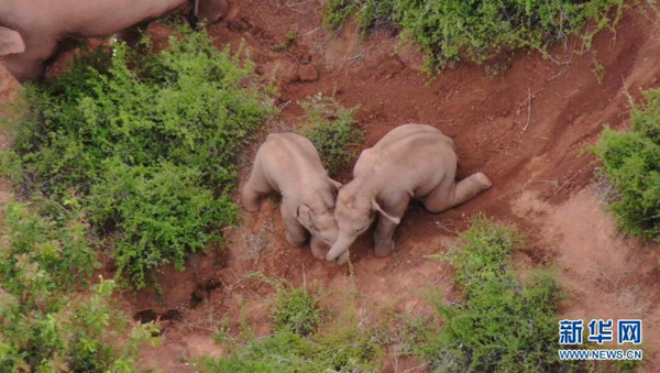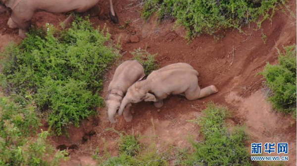 6月17日在玉溪市易門縣十街鄉(xiāng)拍攝的小象嬉戲打鬧瞬間(無人機(jī)視頻截圖)。