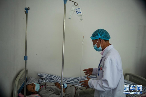 章忠武在村衛(wèi)生室與患者交流(8月16日攝)。新華社記者 陶亮 攝