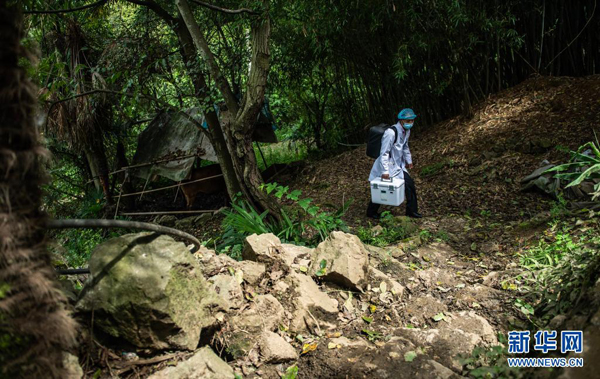 章忠武在前往村民家的路上(8月16日攝)。新華社記者 陶亮 攝