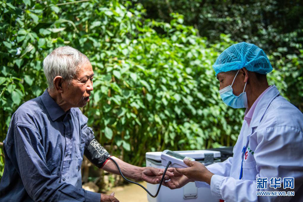 章忠武在給趙仕明老人測(cè)量血壓(8月16日攝)。
