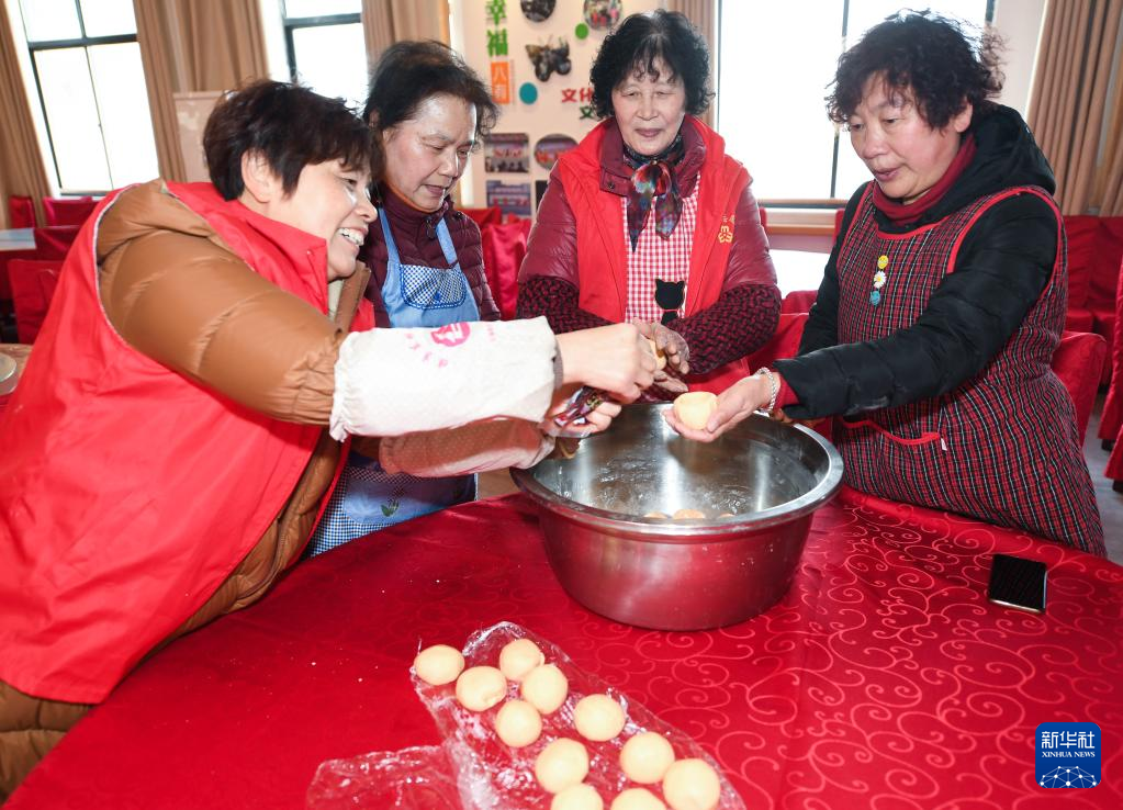 1月12日,星火村巾幗志愿者和村民在村文化禮堂制作糯米團(tuán)子。