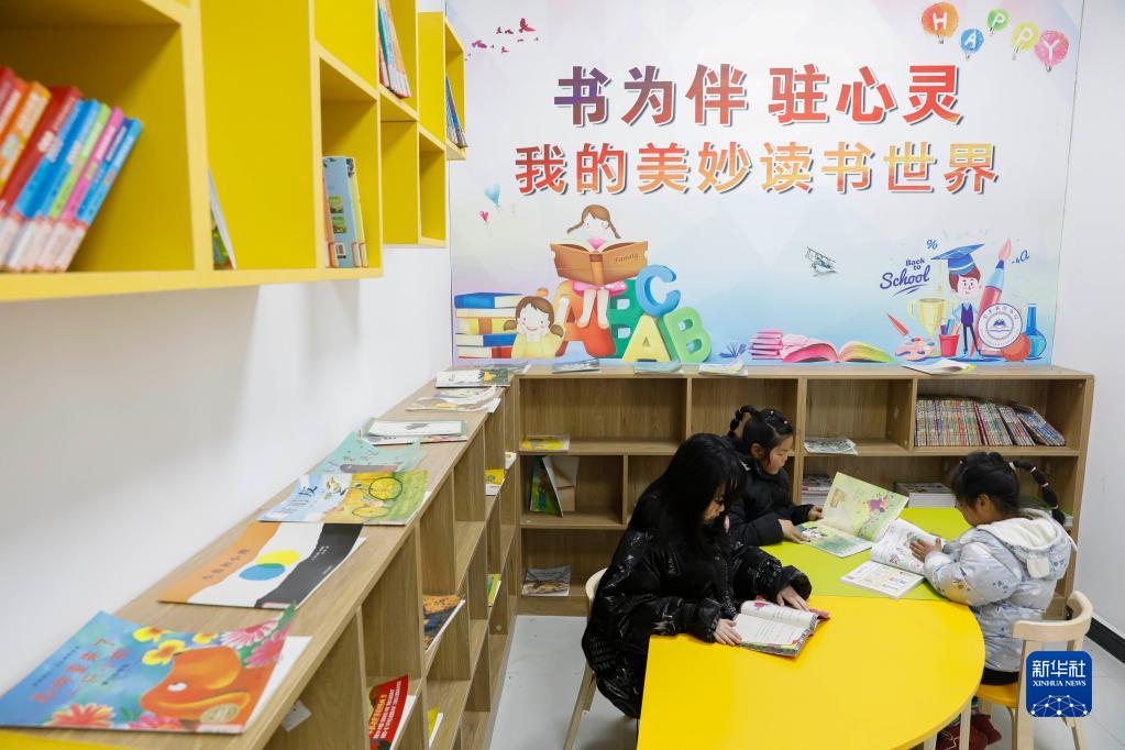 2月8日,小朋友們?cè)趶埌藰蜴?zhèn)圖書(shū)館閱讀。