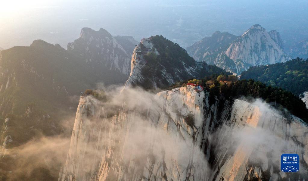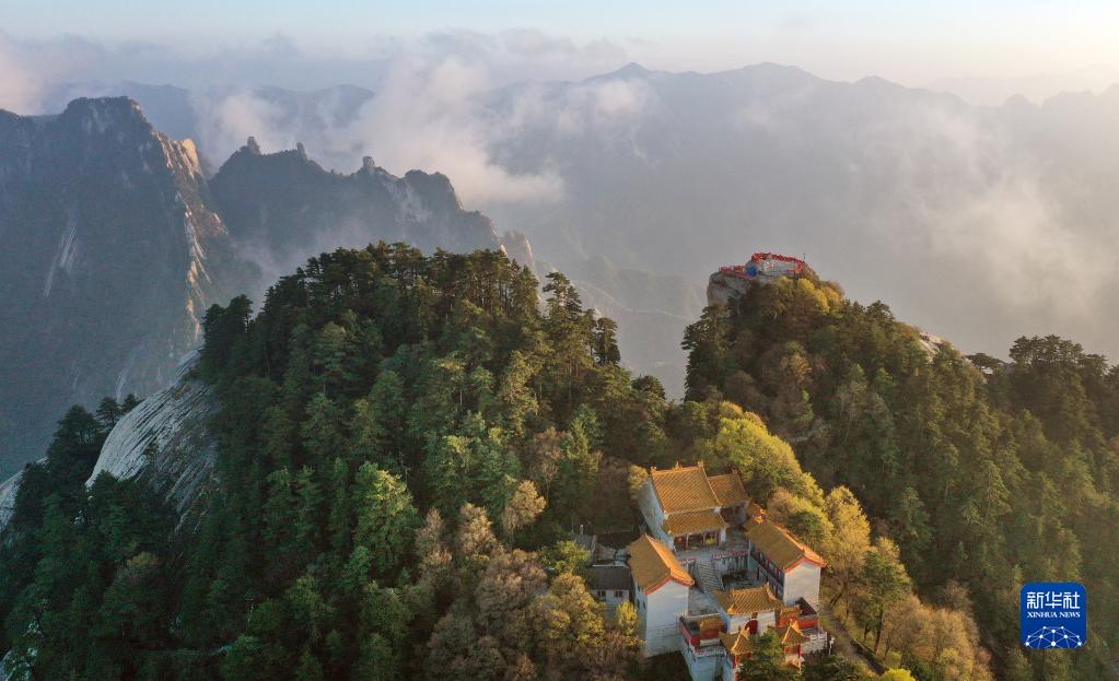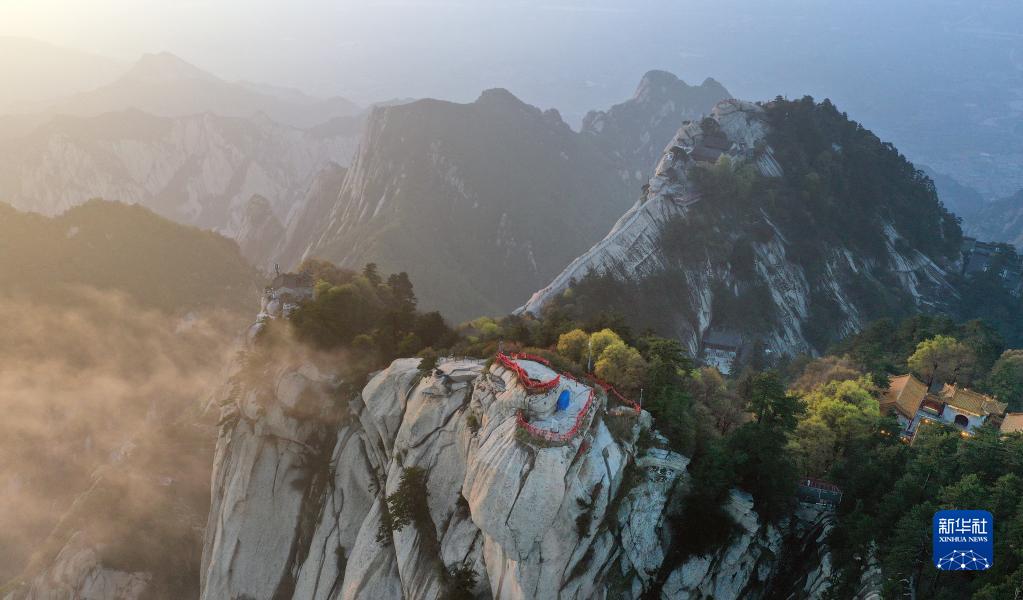 夕陽(yáng)下的華山(4月28日攝,無(wú)人機(jī)照片)。