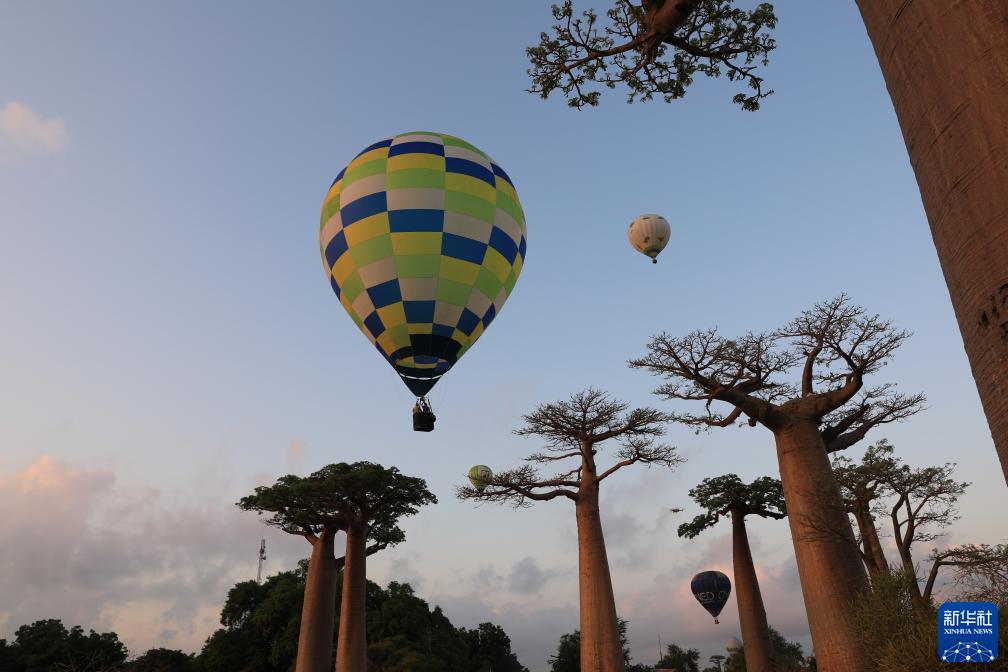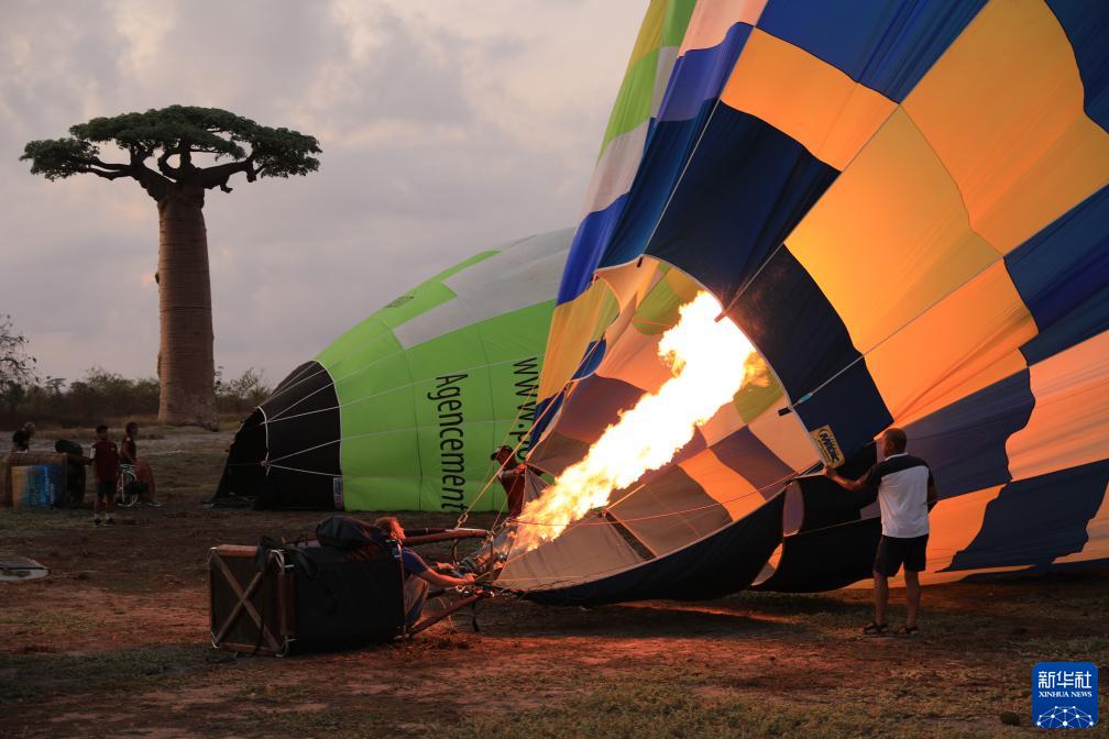 當日,在馬達加斯加穆龍達瓦猴面包樹大道,來自瑞士、法國等國的熱氣球旅行愛好者于日出時分乘坐熱氣球升空。猴面包樹與熱氣球構成了一道獨特的風景。