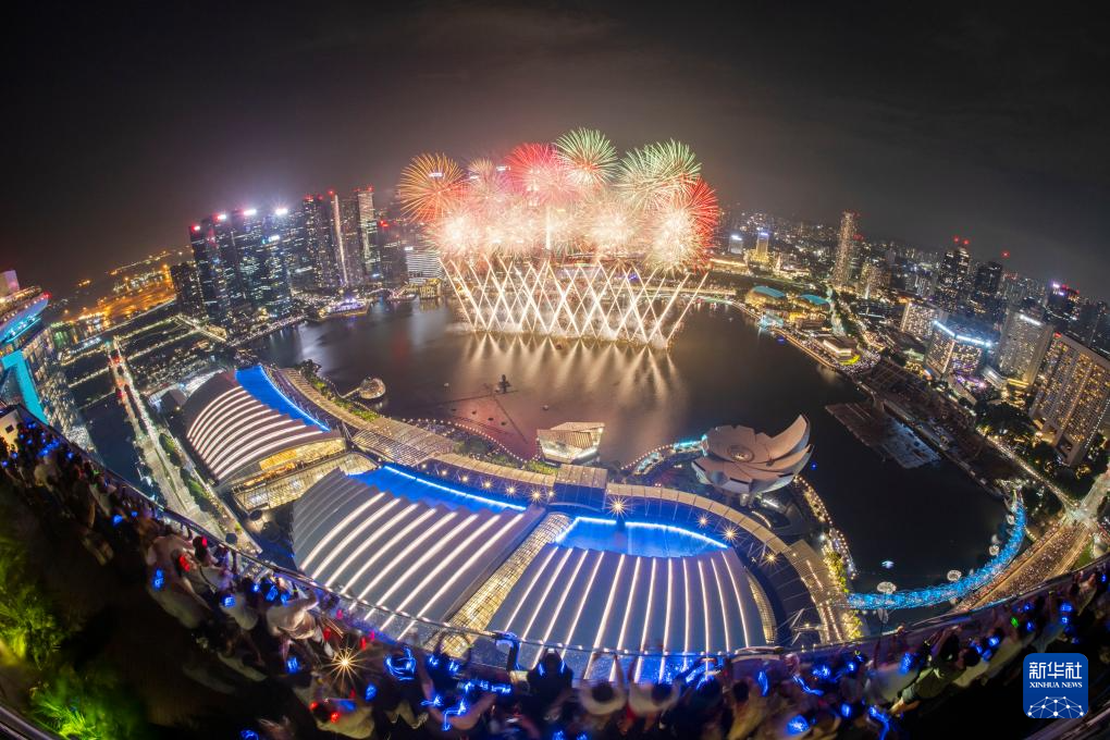 2024年1月1日凌晨,焰火在新加坡濱海灣舉行的跨年活動中綻放。