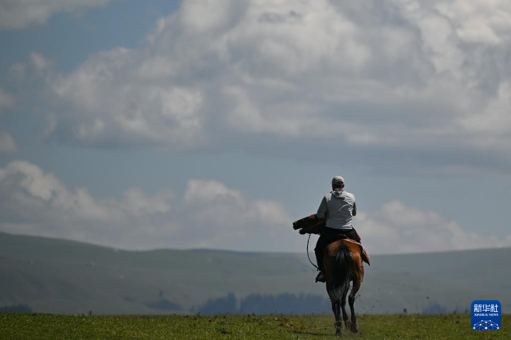 8月3日,一名男子在那拉提草原上騎馬。