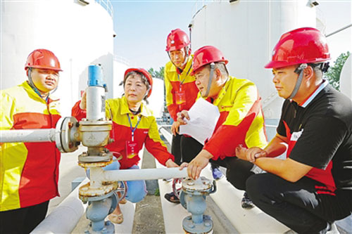 源匯區(qū)紀(jì)檢監(jiān)察干部在某油庫(kù)了解應(yīng)急職能部門(mén)安全生產(chǎn)監(jiān)管責(zé)任與“穩(wěn)企業(yè)保就業(yè)”惠企政策落實(shí)等情況